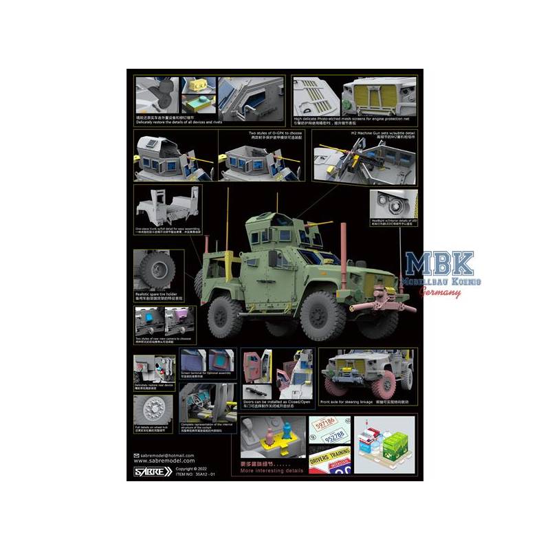 Cette Deluxe Edition 35A12-DLX correspond à la version la plus complète du kit Sabre Model. Elle reprend l’intégralité de la Premium Edition 35A12-P en y ajoutant des éléments exclusifs, notamment les 4 pneus à déformation auto-poids, offrant un réalisme exceptionnel en diorama.