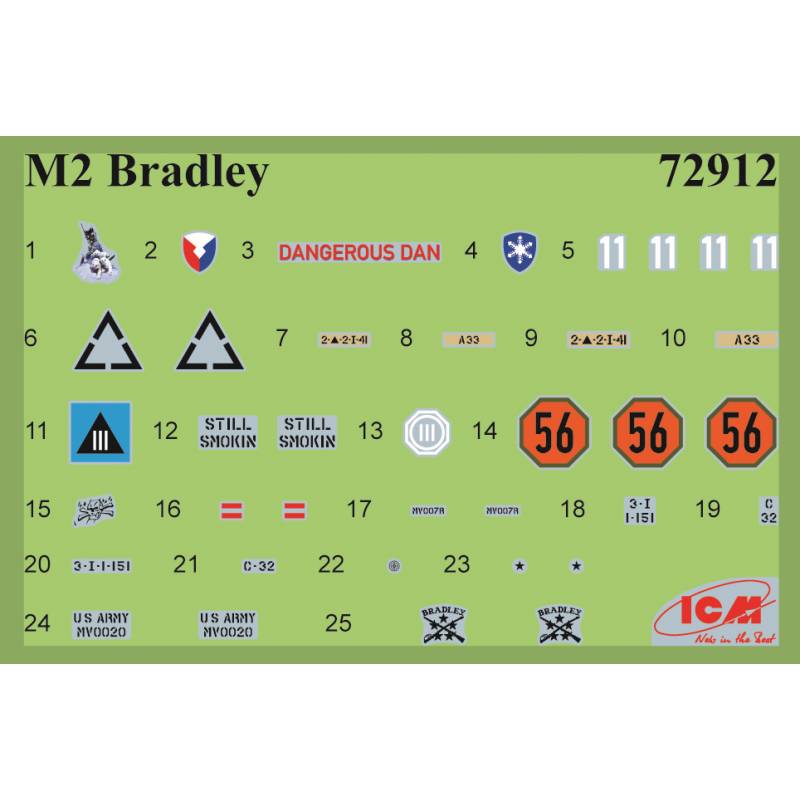 Le kit ICM 72912 restitue fidèlement les lignes et la silhouette trapue du Bradley, avec un soin particulier apporté aux détails de la tourelle, des trappes, des optiques et des chenilles. Le moulage précis, typique de la production ICM, permet un montage fluide et une finition réaliste, idéale pour les dioramas modernes ou les collectionneurs de blindés contemporains.
