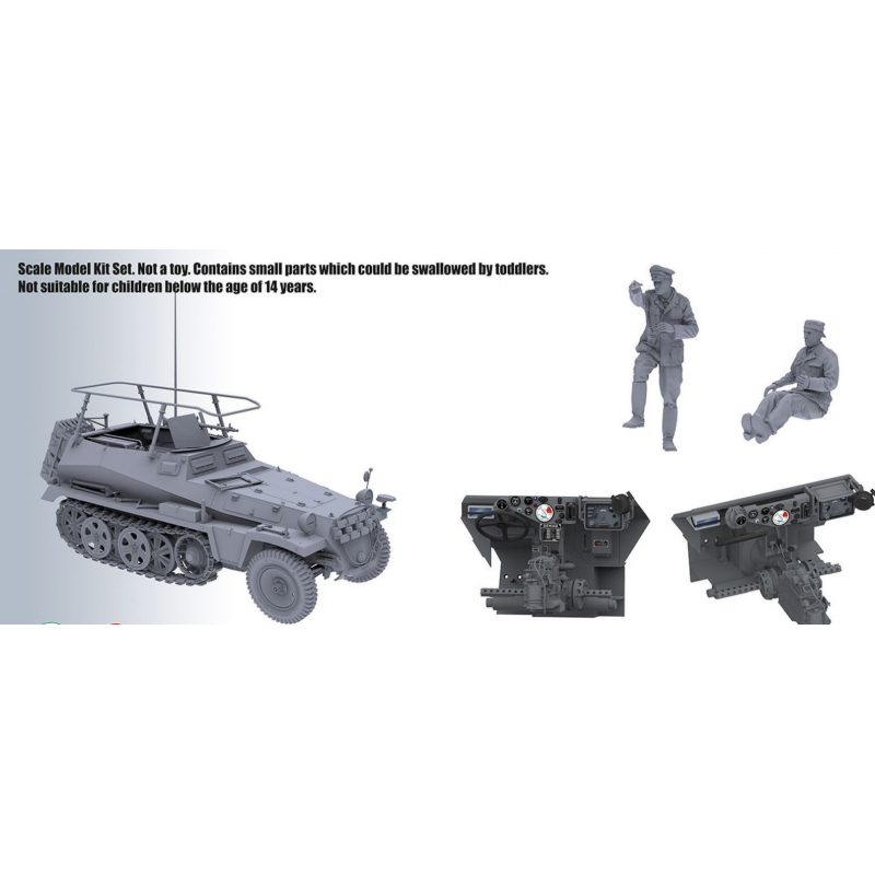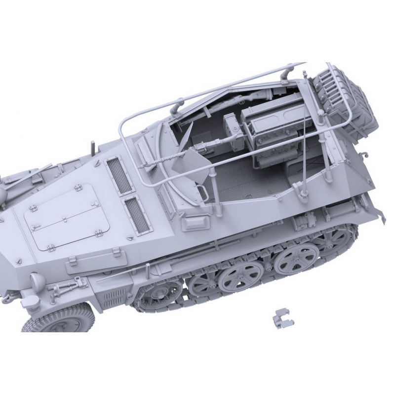 Le kit comprend un intérieur entièrement reproduit avec les équipements radio caractéristiques du Sd.Kfz. 250/3, notamment les postes FuG 5 et FuG 7 utilisés pour les communications tactiques et longue distance. Le compartiment moteur reproduit le moteur Maybach HL42 TRKM à six cylindres avec un haut niveau de détail. Les panneaux moteurs peuvent être laissés ouverts afin de mettre en valeur cette partie mécanique.