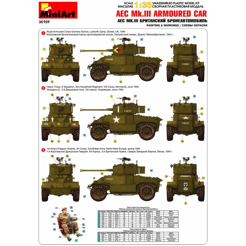 Les décalcomanies sont incluses pour plusieurs marquages, et la notice en couleurs accompagne pas à pas le montage de ce kit complexe. Par la richesse de son contenu, la précision de ses volumes et la fidélité de ses aménagements internes, cette AEC Mk.III Armoured Car s’adresse clairement aux maquettistes confirmés souhaitant réaliser un projet ambitieux, que ce soit en montage intégral, en coupe technique ou au cœur d’un diorama britannique de la Seconde Guerre mondiale.