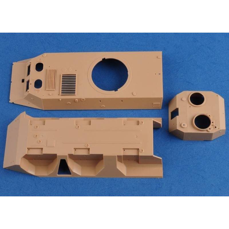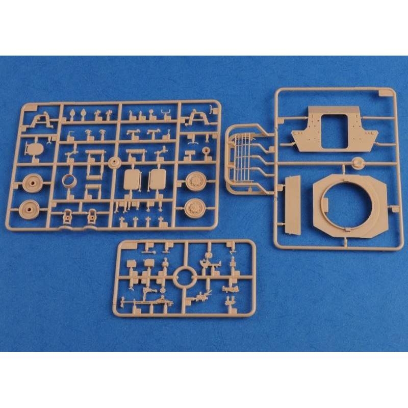 Maquette à monter et à peindre de plus de 270 pièces. Pièces en photo découpe, tourelle multi directionnelle. Porte d'entrée des troupes pouvant être montée ouverte ou fermée. Dimensions de la maquette : Longueur 192mm, Largeur 87 mm.