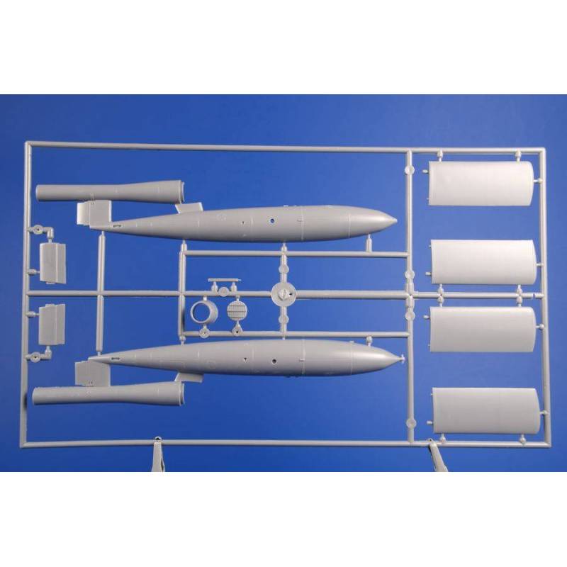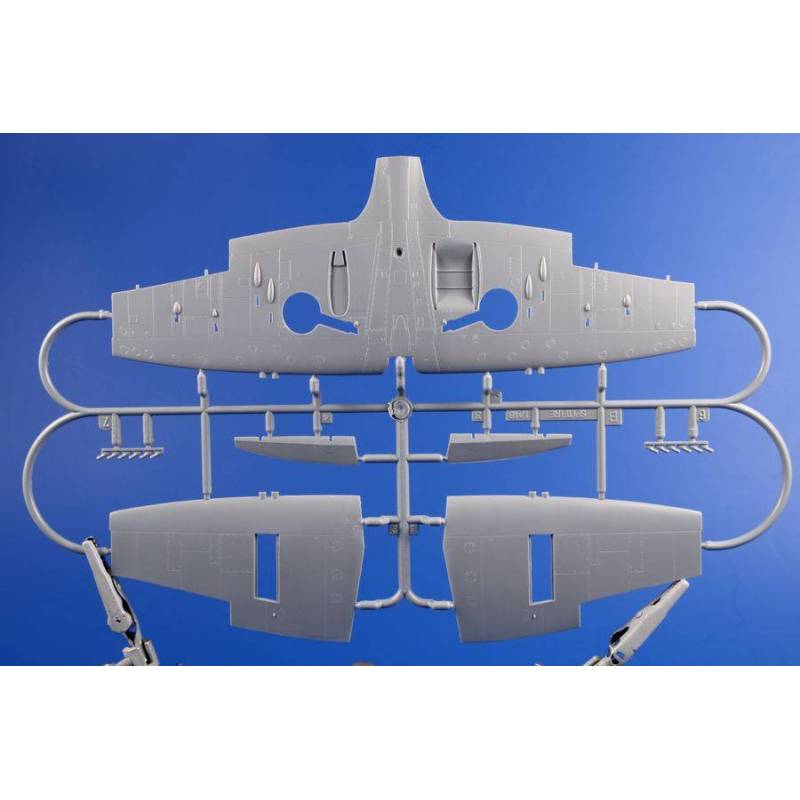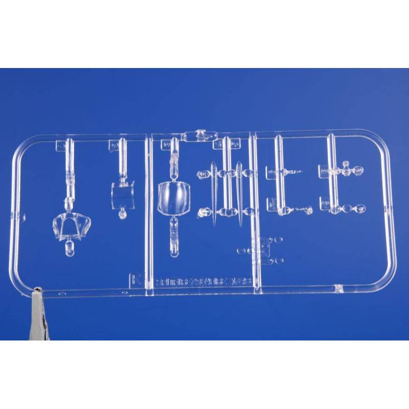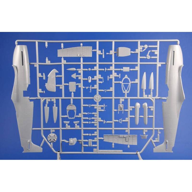 Le Hawker Tempest est un chasseur-bombardier de la Seconde Guerre mondiale. Cet appareil construit par Hawker succède au Typhoon et au Hawker Hurricane. Son moteur est un Napier Sabre de 24 cylindres en H sans soupape, capable de développer 3 000 chevaux. L’ingénieur en chef Sydney Camm qui le dessina après le Hurricane, se basa sur le Typhoon, avion d’assaut gros porteur, solide, massif et présentant une aile de forte épaisseur. Le Tempest V voit le jour en seulement six mois. Son fuselage est agrandi d’un mètre pour y accueillir 400 litres d’essence supplémentaires à 130 d’octane. Il possède une hélice quadripales de 4 mètres de diamètre et un train d’atterrissage oléopneumatique de 5 mètres de voie, pour accroître sa stabilité au sol. Des pneus de petite taille sont développés par Dunlop afin de pouvoir les loger dans les ailes. Ses ailes à écoulement laminaire sont très fines, et des canons spéciaux raccourcis Hispano type V sont spécifiquement développés pour ce modèle. Son poste de pilotage minuscule est disposé plus en arrière pour augmenter la visibilité. Les volets sont retravaillés pour accroître la stabilité à l’atterrissage qui se fait à 200 km/h. Des réservoirs supplémentaires aérodynamiques spéciaux sont conçus pour le Tempest. Avec ses deux réservoirs, le Tempest monte à 580 km/h et à 640 km/h en croisière rapide. À pleine vitesse et boost maximum en palier : 735 km/h à 5 000 mètres. En piqué à 5 000 m, le Tempest atteint les 800 km/h. Il est l’un des seuls appareils des alliés à atteindre une vitesse de l’ordre sonique au cours de la guerre. Le Tempest dispose d’un rayon d’action de 1 400 km, de 1 400 litres d’essence et quatre canons de 20 mm tirant 800 obus au total (soit une vingtaine de secondes de feu). Le kit contient 4 décorations pour appareils de la RAF.
