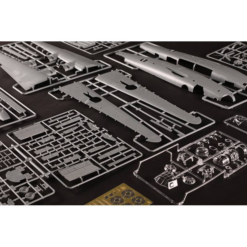 Le kit Hobby Boss (réf. 81774) à l’échelle 1/48 propose une reproduction impressionnante de ce quadrimoteur emblématique. Avec plus de 490 pièces réparties sur 20 grappes, il permet un montage détaillé du fuselage, des ailes et du cockpit. Les pneus sont en caoutchouc rainurés, et une planche de photo-découpe est incluse pour les éléments les plus fins. Les dimensions du modèle fini atteignent 430,3 mm de long pour une envergure de 694,6 mm, reflétant toute la puissance de cet appareil historique.