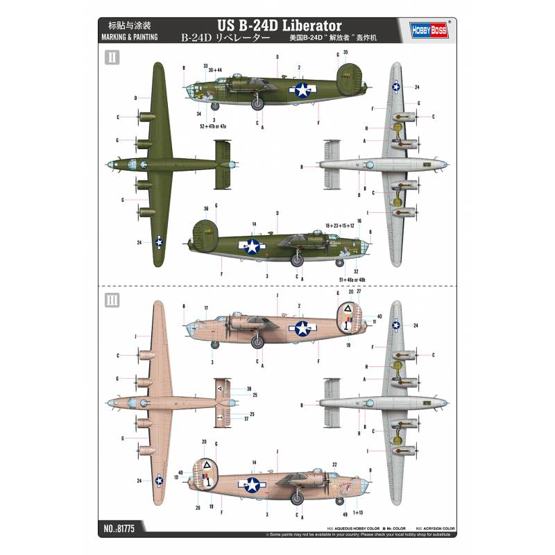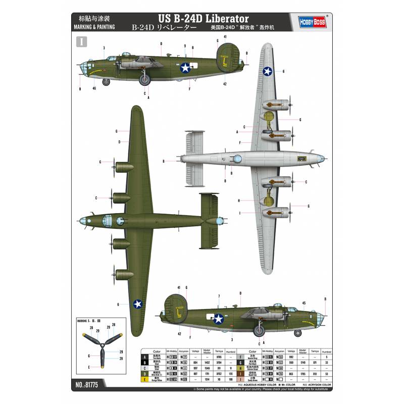 La maquette de l’avion américain B-24D Liberator de HOBBY BOSS à l’échelle 1/48 (référence 81775) est une reproduction fidèle et détaillée de ce célèbre bombardier lourd de la Seconde Guerre mondiale. Connu au sein de la Consolidated Aircraft sous le nom de "Modèle 32", le B-24 a joué un rôle majeur au sein des forces alliées, opérant sur les fronts européen, pacifique, méditerranéen et en Chine-Birmanie-Inde.