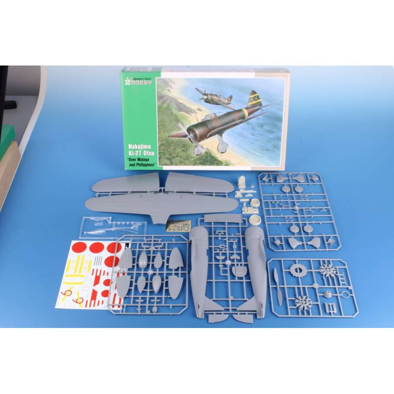 Special Hobby propose ici, à l’échelle 1/32, une maquette fine et détaillée du Ki-27 Otsu, dans une édition spécifique rendant hommage à ses engagements dans les cieux du sud-est asiatique au début du conflit.