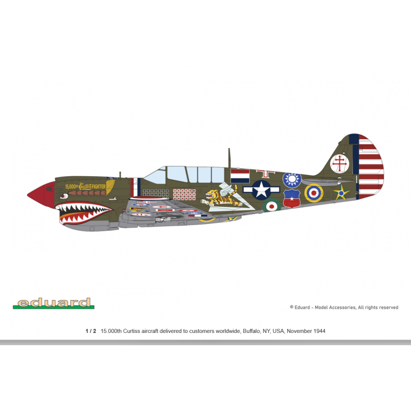 Cette édition limitée célèbre un jalon historique : le 15 000e avion produit par Curtiss, un P-40N décoré avec les marquages de vingt-huit pays ayant utilisé des appareils issus des chaînes de production de Curtiss. Ce marquage symbolique rend hommage à la diffusion mondiale du Warhawk et à son rôle fédérateur au sein des forces alliées.