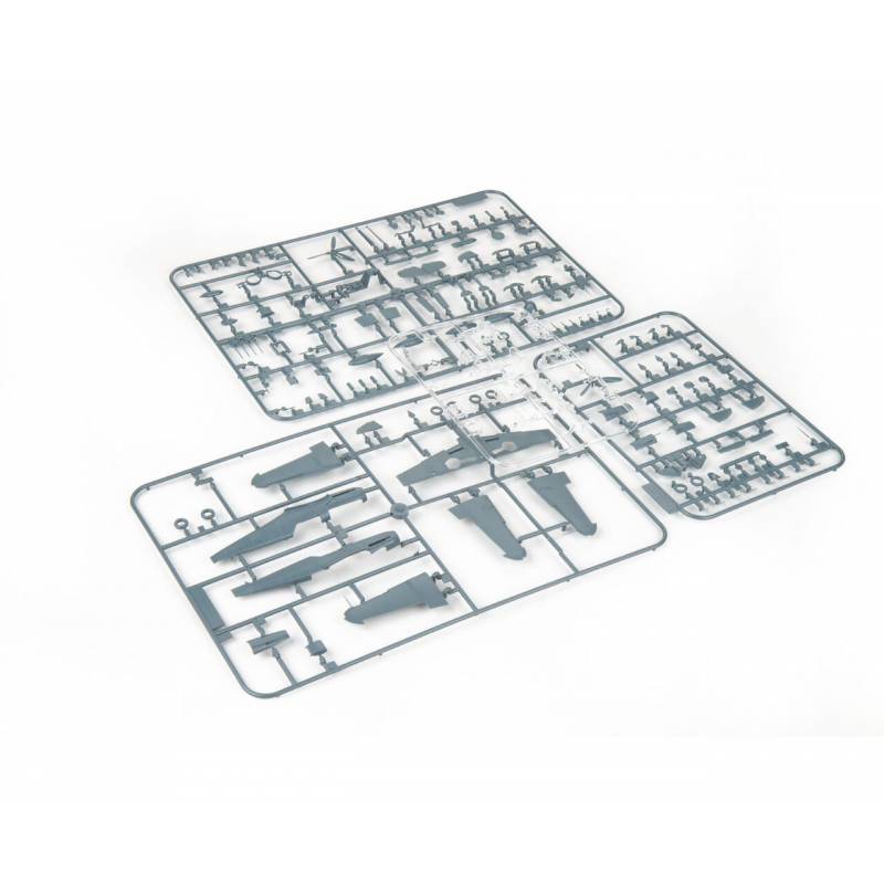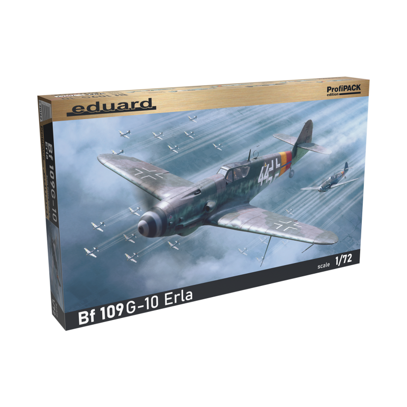 Ce kit ProfiPACK à l’échelle 1:72 d’Eduard met en avant les caractéristiques propres aux appareils sortis de l’usine Erla, avec un haut niveau de précision et de détails. Il comprend des pièces en plastique injecté d’excellente qualité, des éléments photodécoupés pré-peints pour enrichir le cockpit et les détails fins, ainsi que des masques de peinture prédécoupés pour un rendu net des verrières et des roues.