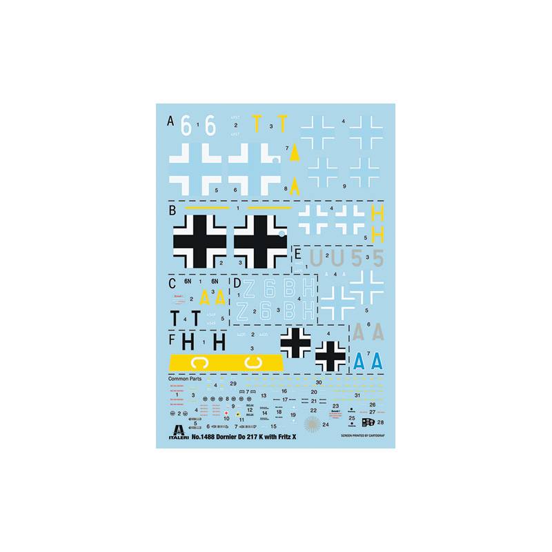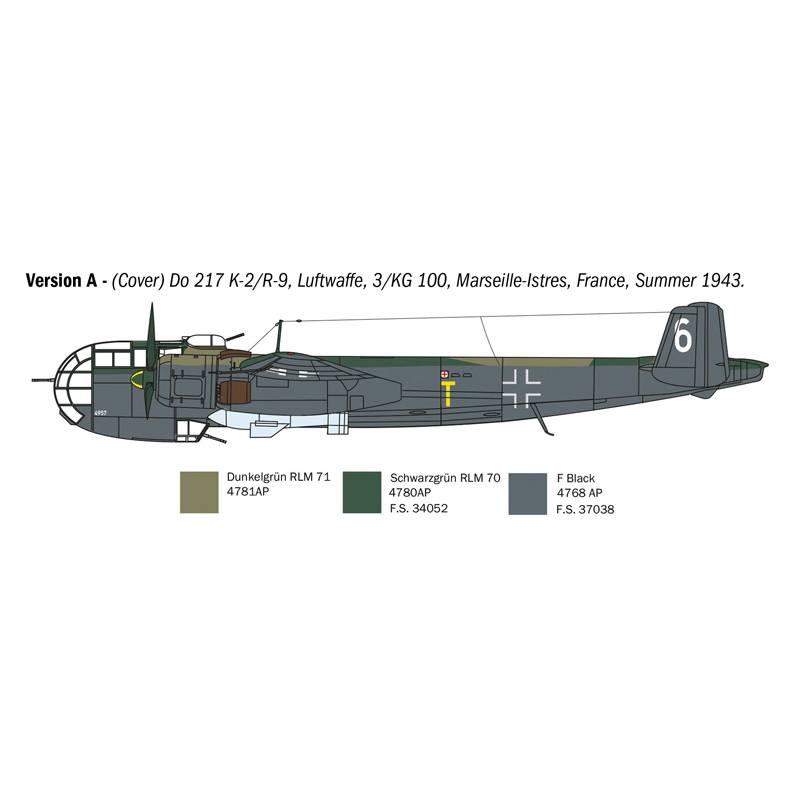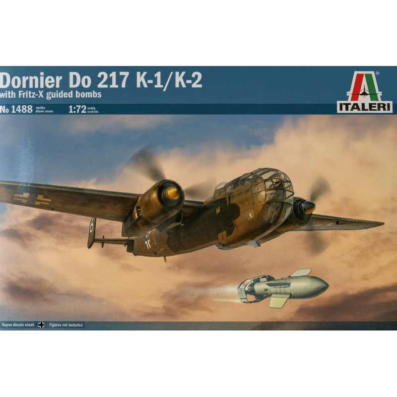 La maquette Dornier Do 217 K-1/K-2 with Fritz X proposée par Italeri à l’échelle 1/72 (réf. 1488) permet de reproduire un bombardier lourd allemand de la Seconde Guerre mondiale, associé à l’une des premières armes guidées de l’histoire.