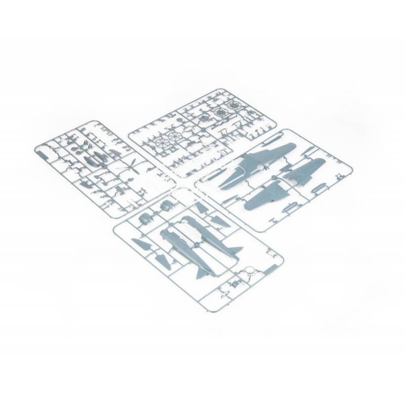 – Pièces en plastique injecté Eduard, finement gravées, restituant fidèlement les tôles ondulées, rivets et lignes de structure ;