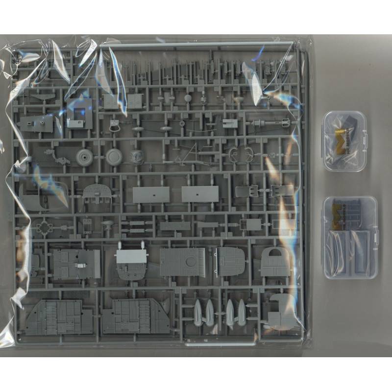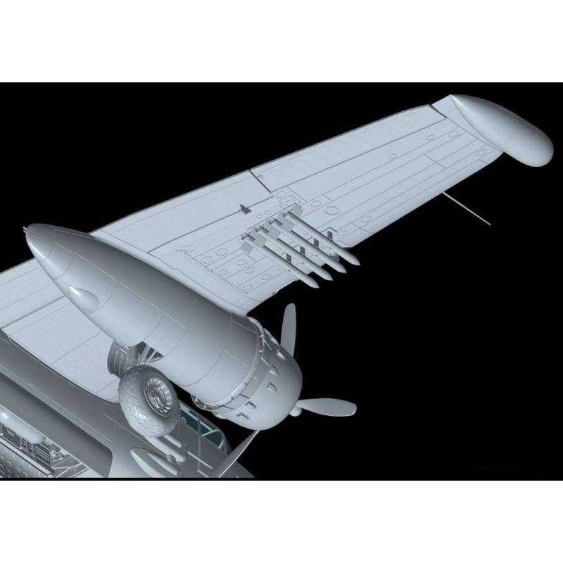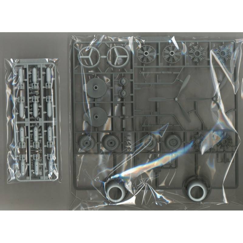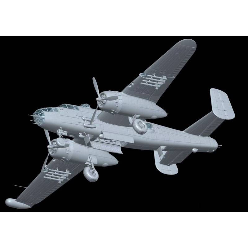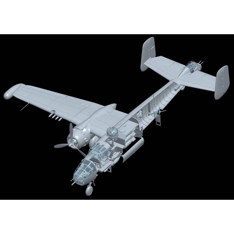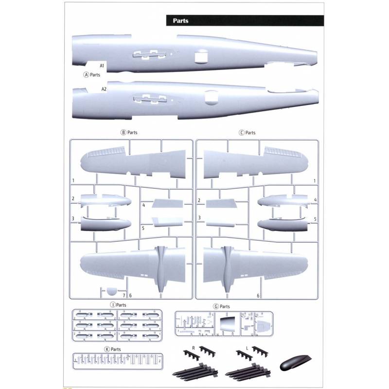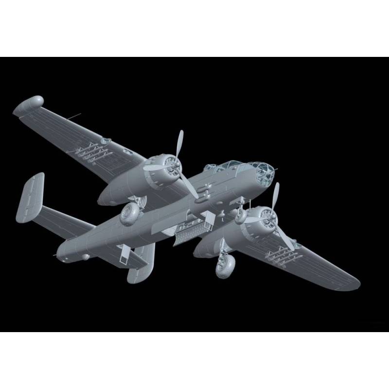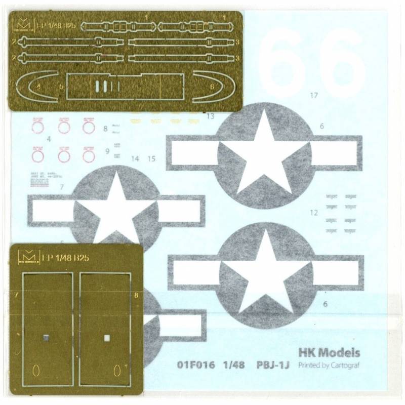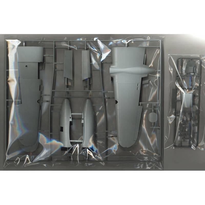 Le kit HK MODELS au 1/48e offre une reproduction détaillée et imposante de cet appareil mythique. Avec 262 pièces finement moulées, il restitue fidèlement la structure robuste et les lignes puissantes du PBJ-1J. Une fois monté, le modèle atteint 429,5 mm d’envergure pour 345 mm de longueur, conférant une présence impressionnante. La gravure est nette et régulière, les puits de train, moteurs et tourelles sont minutieusement représentés, et le cockpit bénéficie d’un aménagement réaliste.