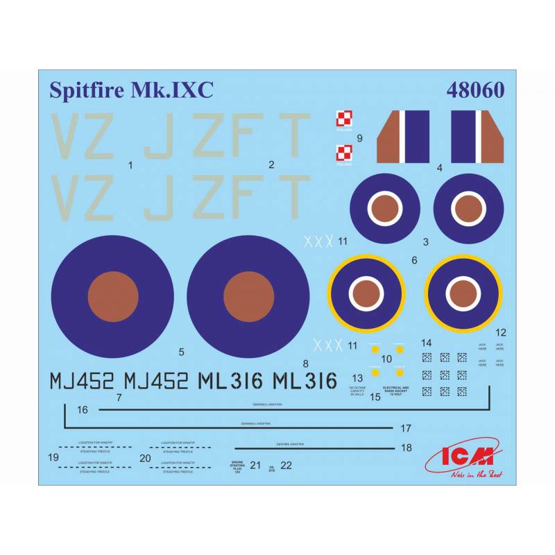 La version Mk.IXC, équipée du moteur Merlin 66, entra en production entre 1943 et 1945. Plus rapide (environ 650 km/h) et dotée d’un armement mixte (2 canons de 20 mm et 4 mitrailleuses Browning de 7,7 mm), elle fut l’une des variantes les plus produites et les plus polyvalentes du Spitfire.