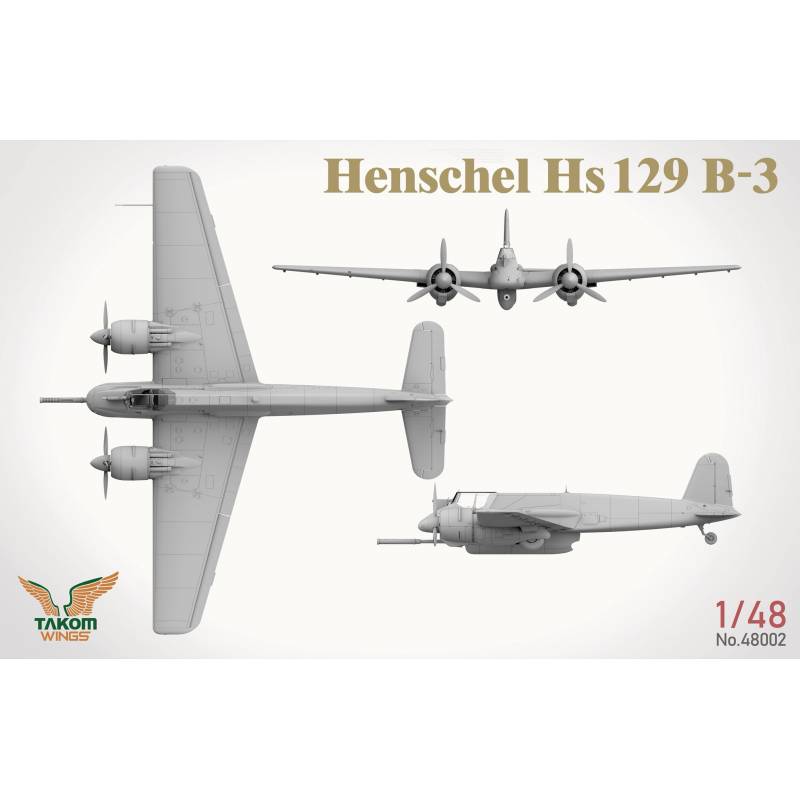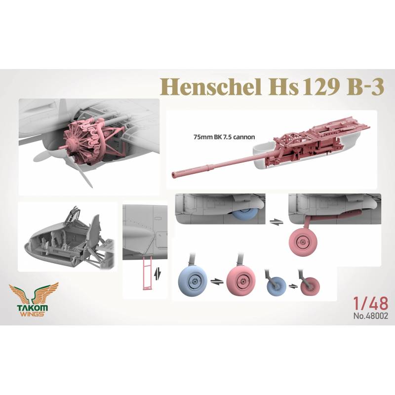 Le kit TAKOM 48002 au 1/48 propose une reproduction fidèle du Hs 129 B-3, tout en conservant les qualités techniques du modèle 48001 :