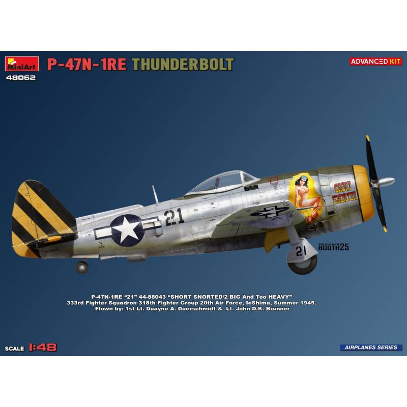 Avec ce P-47N-1RE Thunderbolt Advanced Kit, MiniArt propose une maquette de référence, alliant finesse de gravure, exactitude historique et plaisir de montage. Elle constitue un excellent choix pour les passionnés d’aviation américaine, du théâtre du Pacifique et des dernières évolutions des chasseurs alliés de 1945.