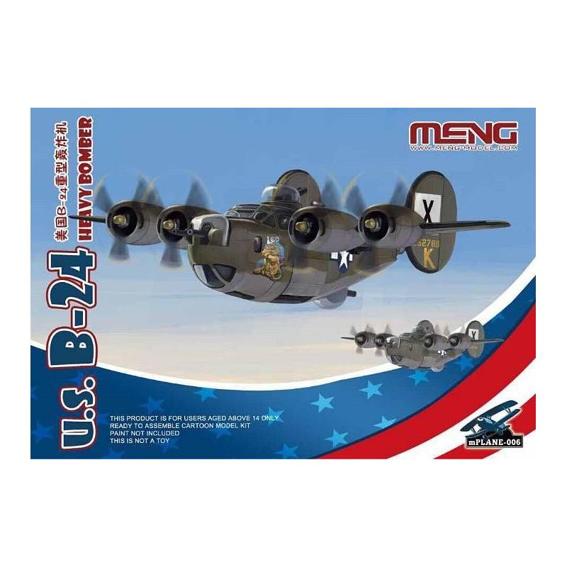 Cette maquette statique signée Meng Model propose une reproduction fidèle des lignes générales de l’appareil. Les formes du fuselage, des ailes et des empennages sont finement détaillées afin de restituer le caractère imposant du bombardier. Le kit permet de représenter les principales caractéristiques du B-24, notamment les tourelles défensives, les vitrages du nez et les moteurs en étoile.