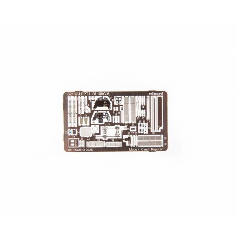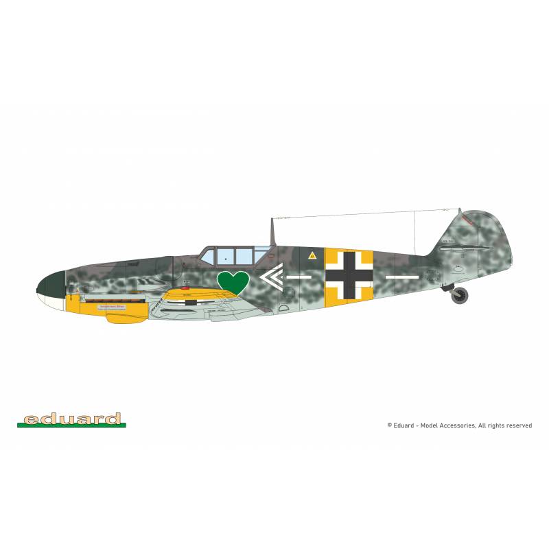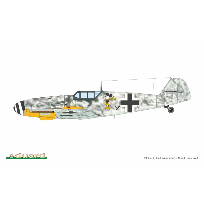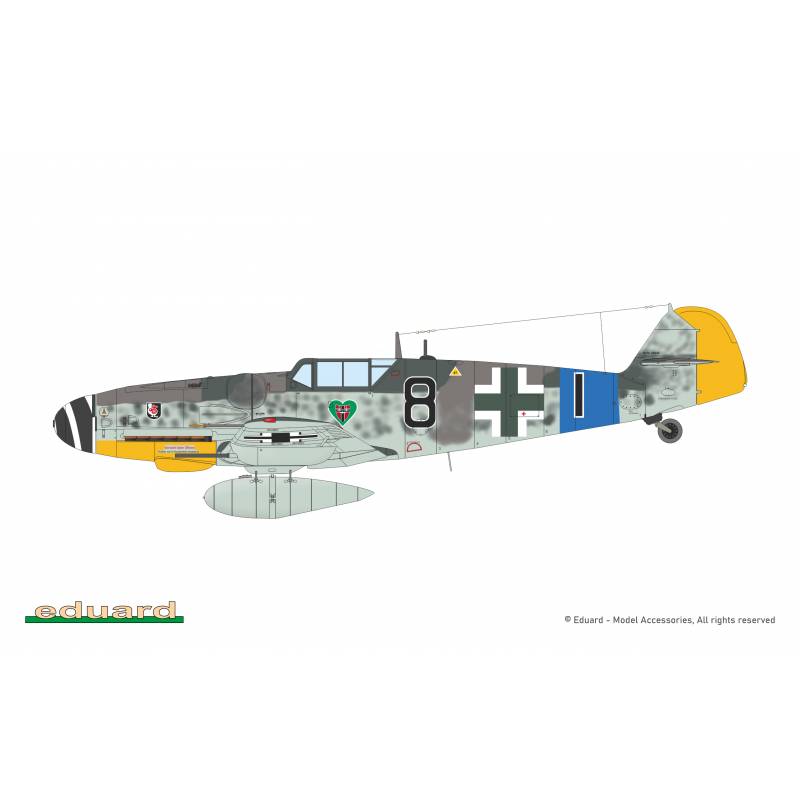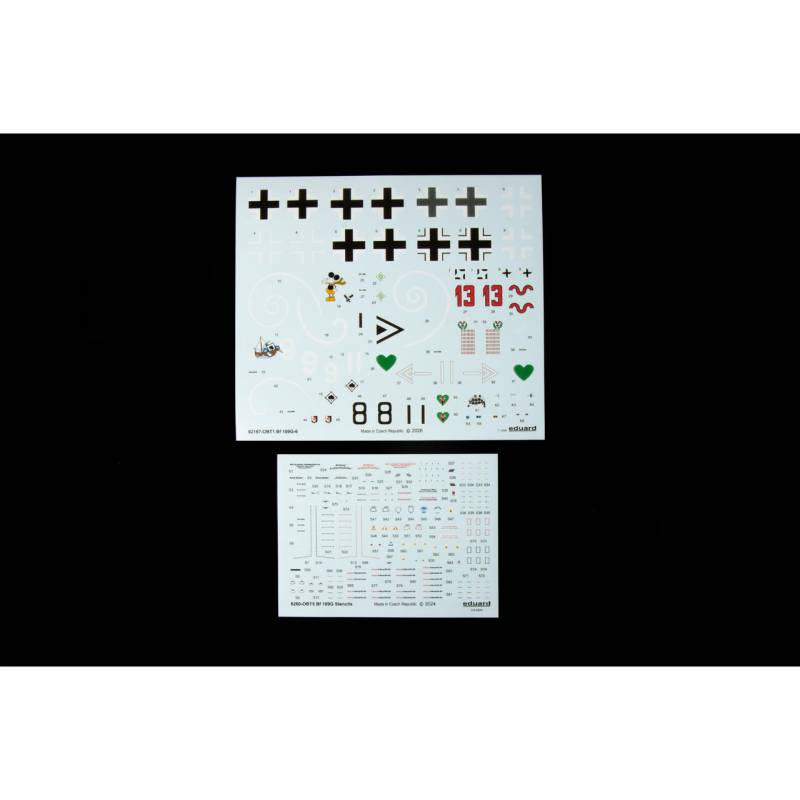 Le modèle permet de réaliser un Bf 109G-6 équipé de la verrière standard et de la dérive standard. La planche de décalcomanies Eduard propose cinq décorations historiques différentes, permettant de représenter des appareils utilisés par diverses unités de la Luftwaffe pendant la guerre.