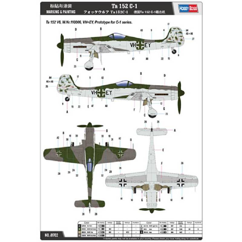 maquette avion Ta 152 C-1 HOBBY BOSS 81702 1/48ème maquette char promo