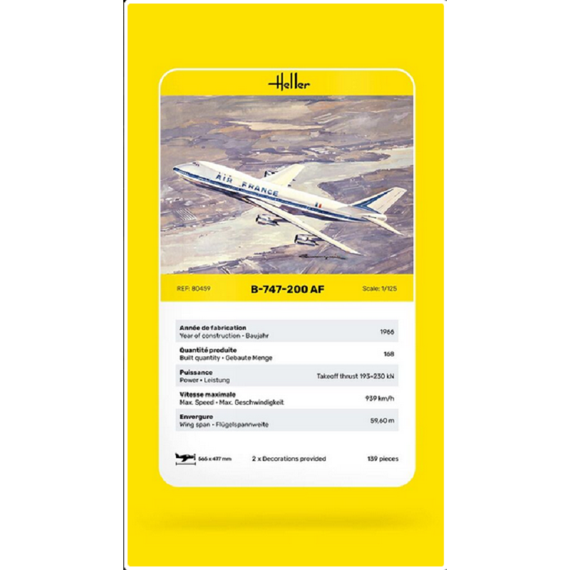 Le kit de maquette Heller 80459 permet de construire une réplique fidèle du Boeing 747-200. Voici ses principales caractéristiques :