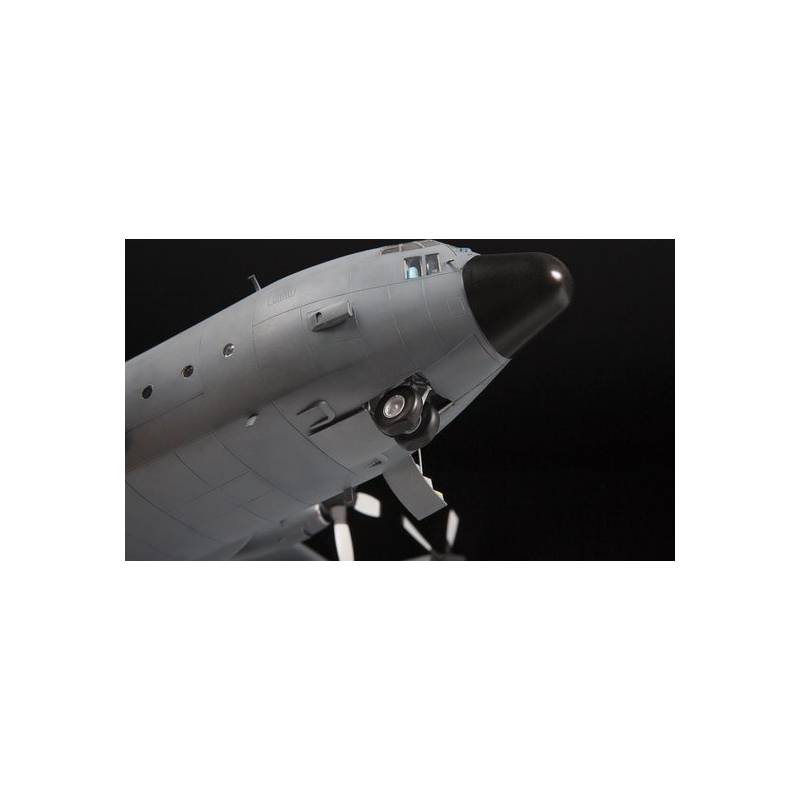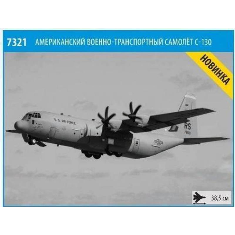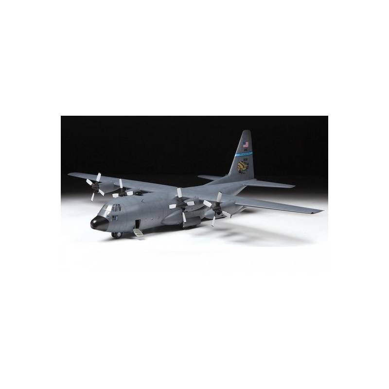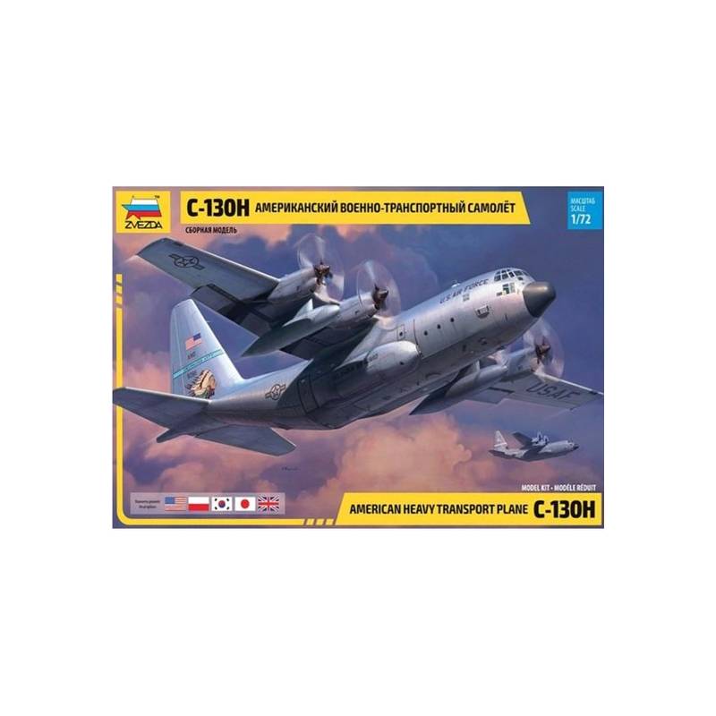 La maquette Zvezda à l'échelle 1/72 (référence 7321) reproduit fidèlement le C-130H. Elle comprend 275 pièces en plastique injecté, avec des lignes de panneaux finement gravées et des détails précis. Les dimensions de la boîte sont de 487 x 307 x 85 mm, pour un poids de 930 g.