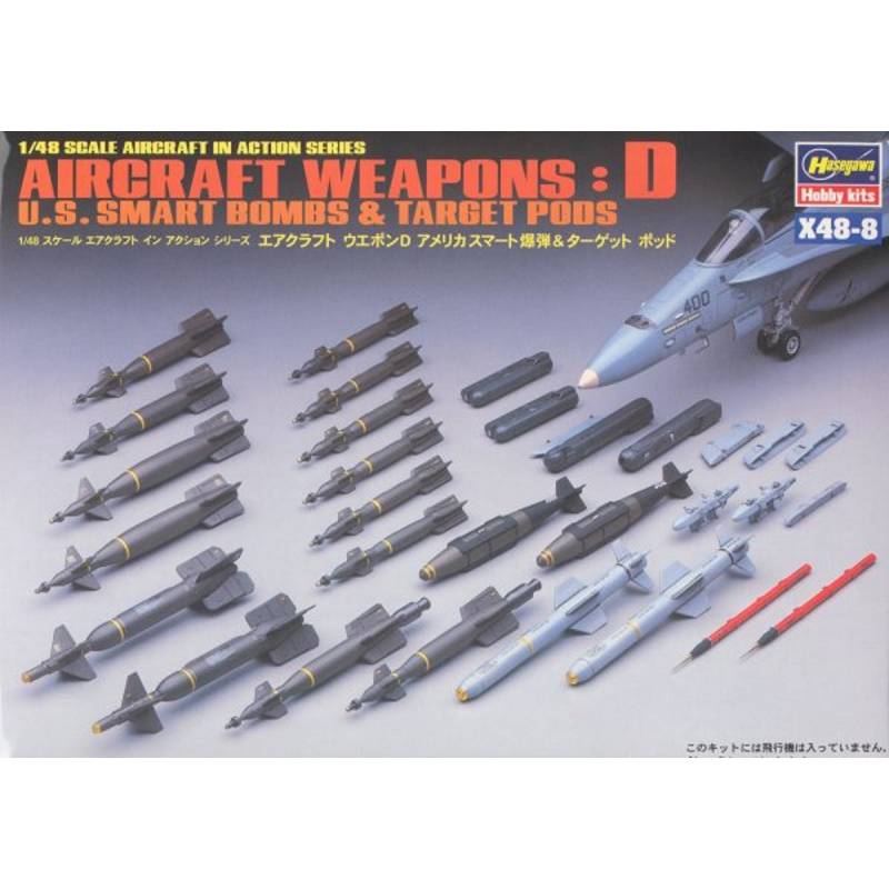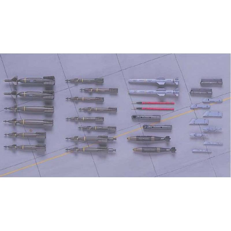 Ce set Hasegawa au 1/48 regroupe un assortiment complet d’armements guidés et de pods de désignation américains destinés à équiper les avions modernes de l’US Air Force et de l’US Navy. Idéal pour enrichir ou moderniser un F-15, F-16, F/A-18, F-14 tardif, A-10, F-35 ou tout autre appareil contemporain, ce coffret permet de reproduire avec précision les configurations d’armement utilisées lors d'opérations récentes, de Desert Storm aux conflits actuels.