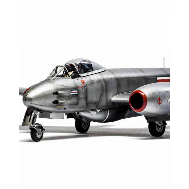 En plus de son intérêt technique, cette édition rappelle l’importance du Meteor, premier chasseur à réaction réellement opérationnel au Royaume-Uni et pilier des forces aériennes de l’après-guerre. La version F.8 fut le modèle le plus avancé de la série, tandis que la FR.9 en offrait une déclinaison spécialisée dans la reconnaissance. Leur silhouette élégante au fuselage raccourci, leur poste de pilotage modernisé et leurs moteurs Derwent puissants sont ici reproduits avec une fidélité remarquable.