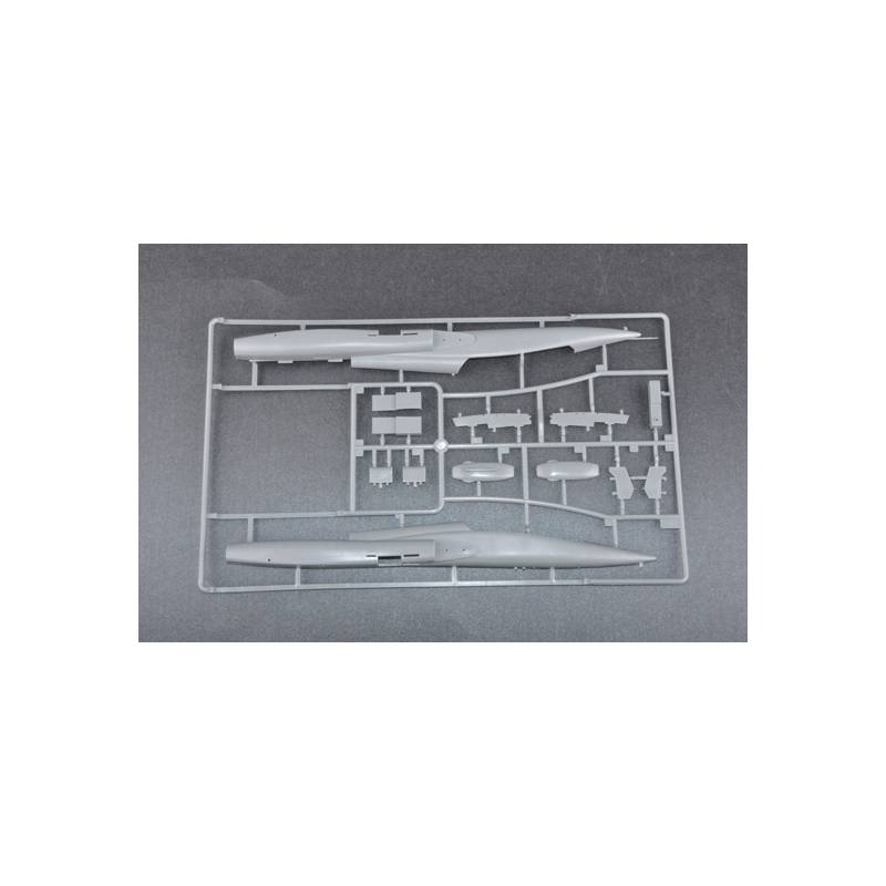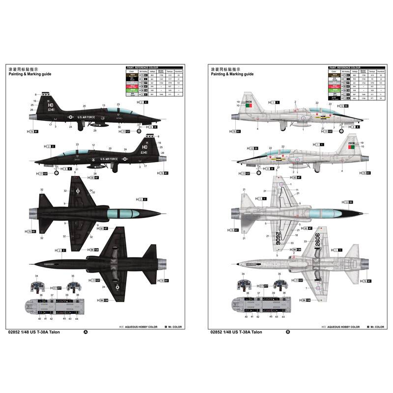 Le kit Trumpeter propose une reproduction fidèle de cette version T-38A avec un montage accessible tout en conservant un bon niveau de détail. La boîte contient plus de 80 pièces réparties sur cinq grappes, incluant plusieurs éléments transparents pour la verrière biplace. Les surfaces de l’appareil présentent des lignes de structure finement gravées, offrant une bonne base pour un travail de peinture réaliste.
