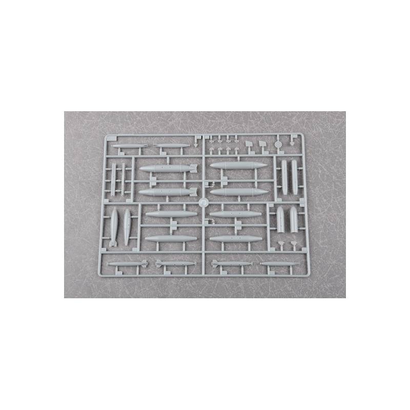 Le kit Trumpeter propose une reproduction détaillée de cet appareil d’attaque léger avec plus de 170 pièces réparties sur sept grappes. Les lignes de structure finement gravées sur le fuselage et les ailes permettent un rendu réaliste après peinture et patine. La boîte inclut également de nombreuses charges externes permettant de représenter différentes configurations opérationnelles, ce qui offre au maquettiste une grande liberté de mise en scène.
