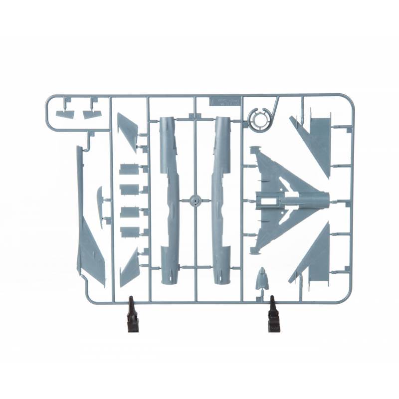À l’échelle 1/72, le modèle monté mesure environ 15 cm de long pour une envergure d’environ 7 cm, offrant un excellent compromis entre compacité et niveau de détail. Sa silhouette élancée et son aile delta en font une pièce particulièrement esthétique en vitrine ou en diorama.