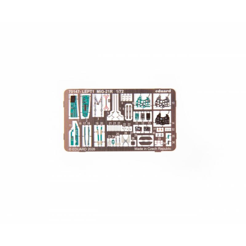 La maquette Eduard 70147 au 1/72 est une édition ProfiPACK, reconnue pour son excellent niveau de détail et ses accessoires inclus. Le kit propose des pièces en plastique finement moulées avec une gravure précise, permettant de reproduire fidèlement les lignes caractéristiques du MiG-21.