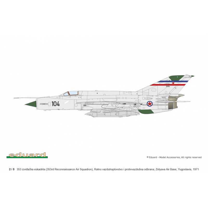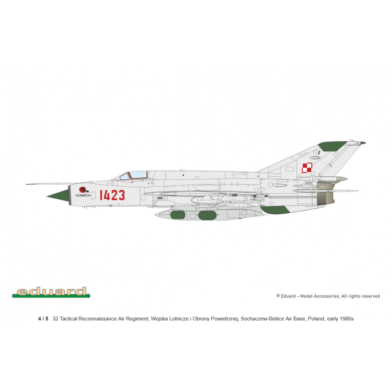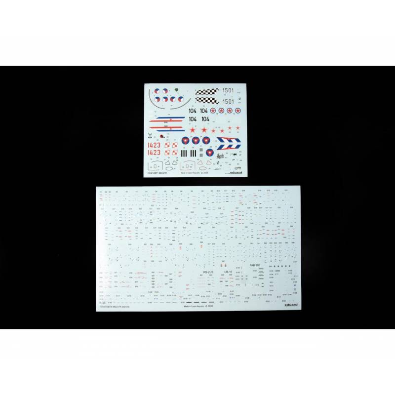 Le coffret propose 5 décorations différentes, permettant de représenter des appareils de diverses forces aériennes, avec des schémas de camouflage typiques de la Guerre froide. Les décalques Eduard assurent une excellente finesse et une application aisée.