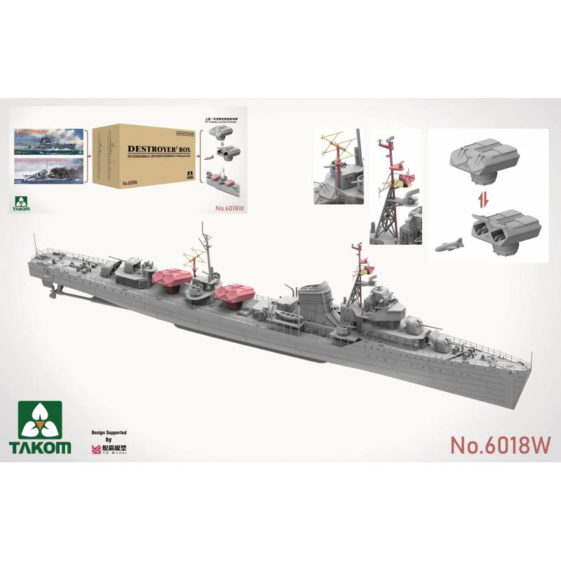 La boîte Destroyers² Box à l’échelle 1/350 proposée par Takom réunit deux destroyers emblématiques issus de la Seconde Guerre mondiale et de la période de la guerre froide, offrant aux maquettistes une occasion unique de comparer l’évolution de ces navires au sein de deux marines différentes. Ce coffret spécial comprend deux kits complets ainsi que des pièces bonus, permettant de réaliser une présentation navale particulièrement intéressante en vitrine.
