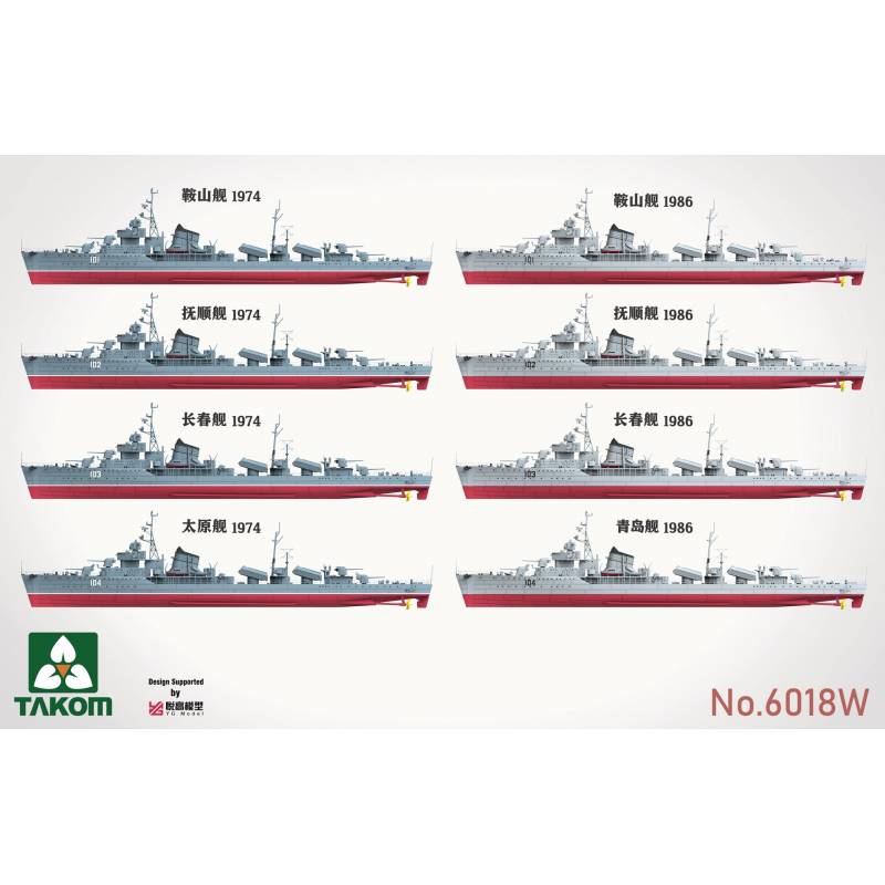 Le second kit représente le destroyer chinois Type 07 classe Anshan, navire issu de destroyers soviétiques transférés à la Chine dans les années 1950 afin de constituer le noyau de sa marine moderne. Ces bâtiments deviennent alors les unités majeures de la flotte chinoise naissante et sont modernisés au fil des décennies, poursuivant leur carrière bien au-delà de leur conception initiale. Le coffret propose cinq options de marquages permettant de représenter différentes configurations de service.