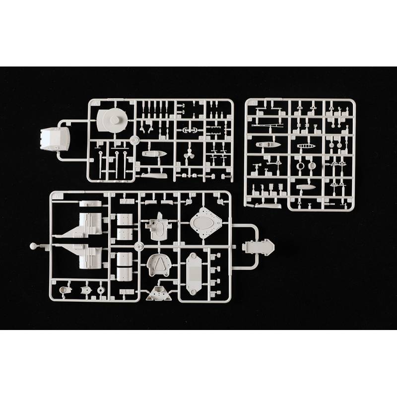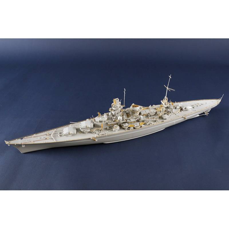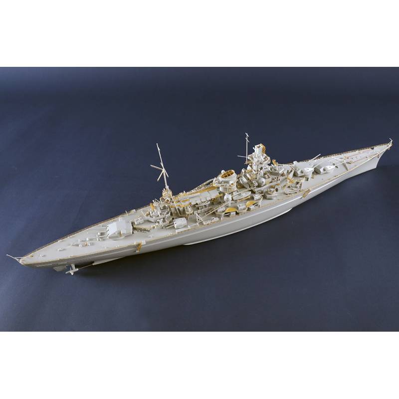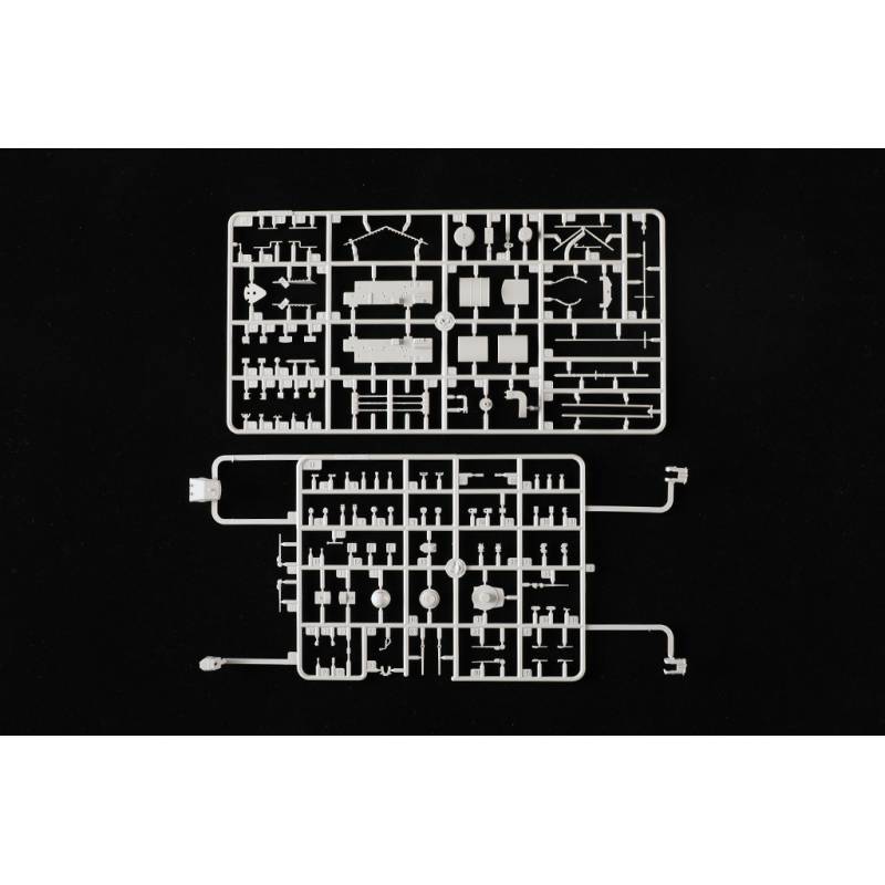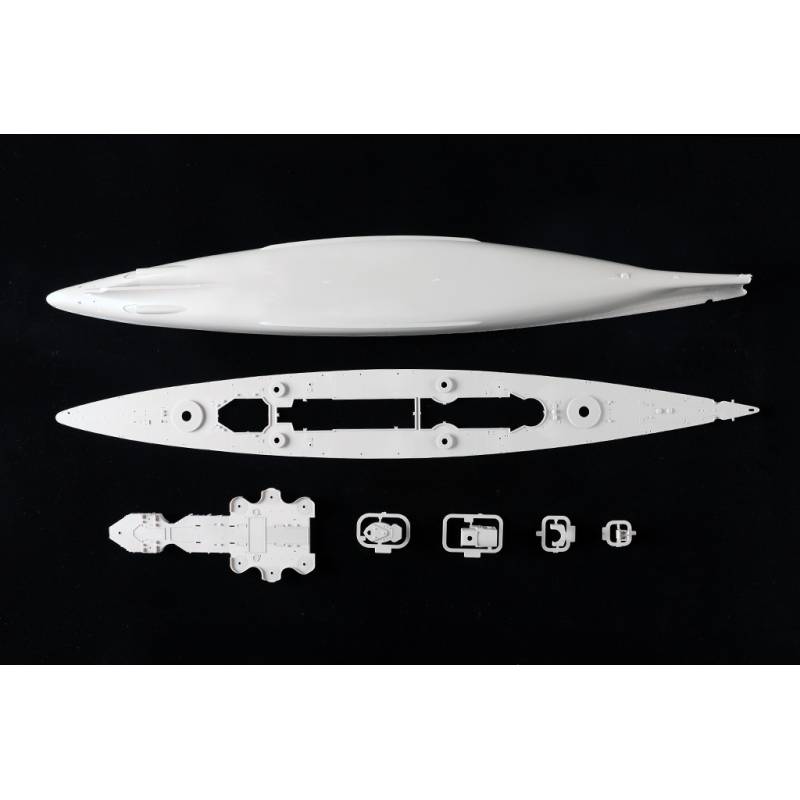 La maquette Trumpeter au 1/350 reproduit ce célèbre cuirassé allemand avec un niveau de détail très élevé. Le kit comprend plus de 990 pièces réparties sur 17 grappes ainsi que les ponts et la coque. La coque est moulée à l’aide de moules à glissières permettant de restituer précisément les formes du navire. Le pont présente une texture bois finement reproduite pour un réalisme accru.