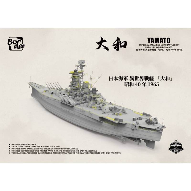 Avec ce Yamato “1965 Parallel World”, Border Model propose une maquette hors du commun, mêlant histoire, imagination et technologie, pour un résultat visuel impressionnant et unique.