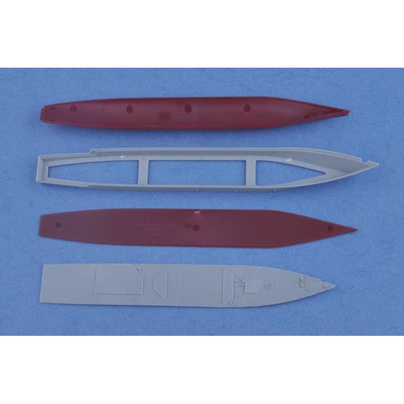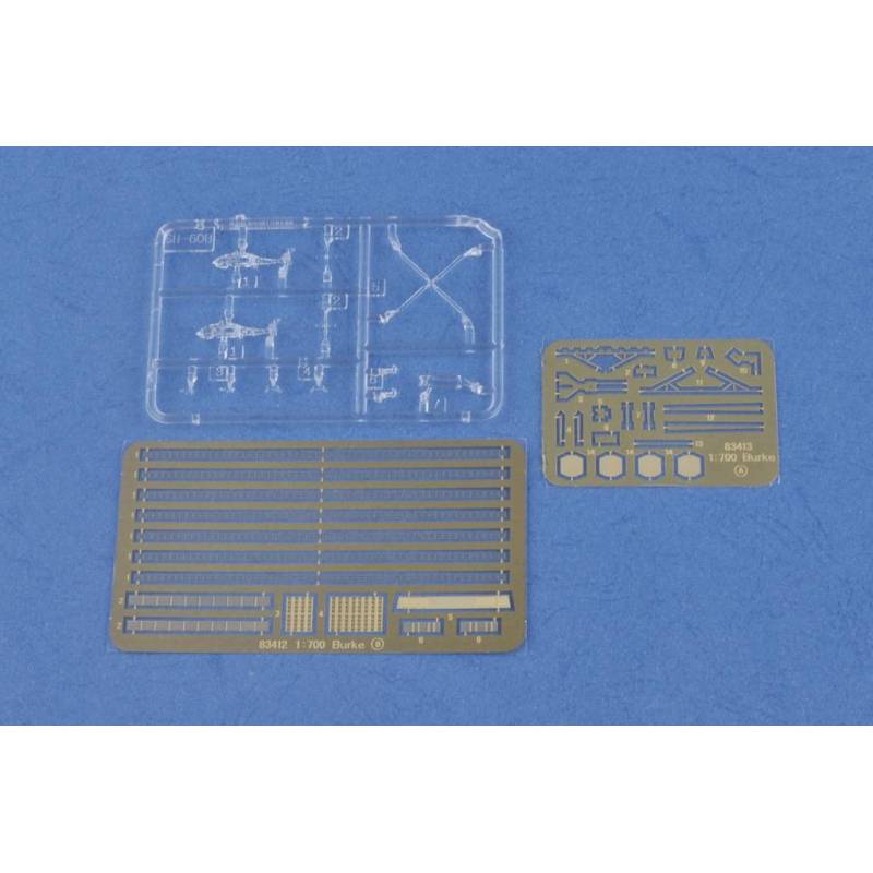Maquette au 1/700 très détaillée de plus de 170 pièces. Coque élaborée à partir de plusieurs moules, sonar séparé, choix de représenter le bateau en coque pleine ou waterline, hélicoptère SH-60 inclus. La boite contient un socle de présentation et des pièces en photo découpe pour les rambardes.