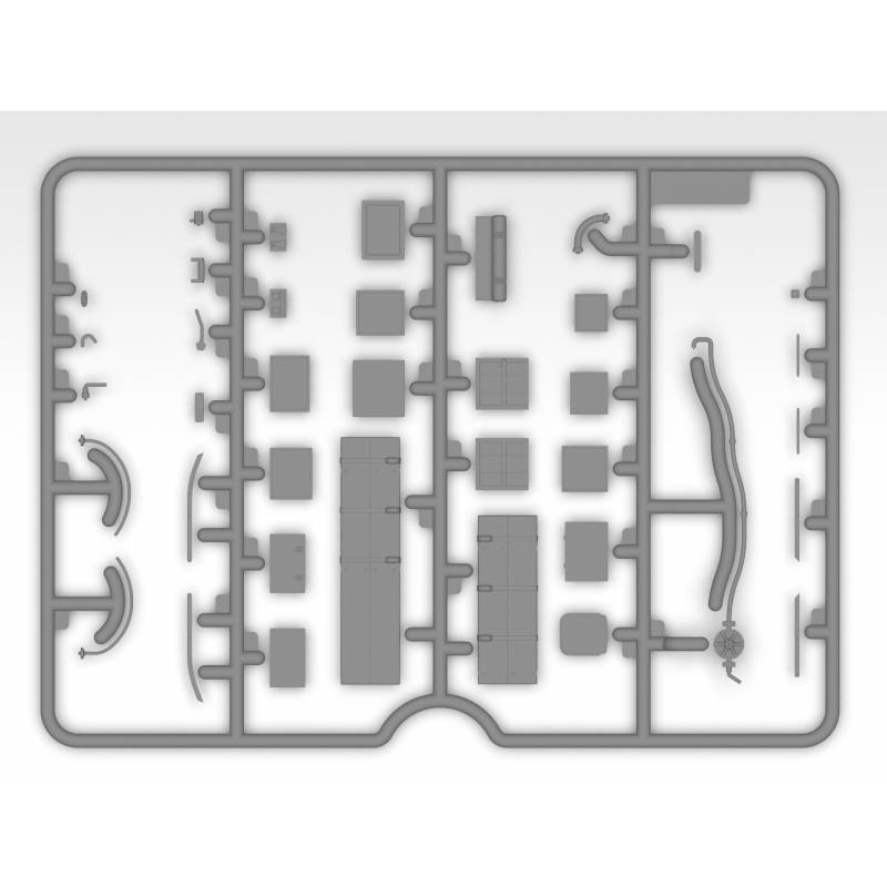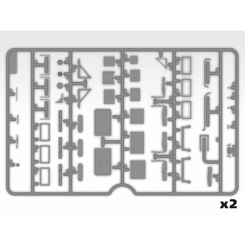 – Nombreux détails intérieurs : aménagements de bureau, cloisons, éléments de commandement