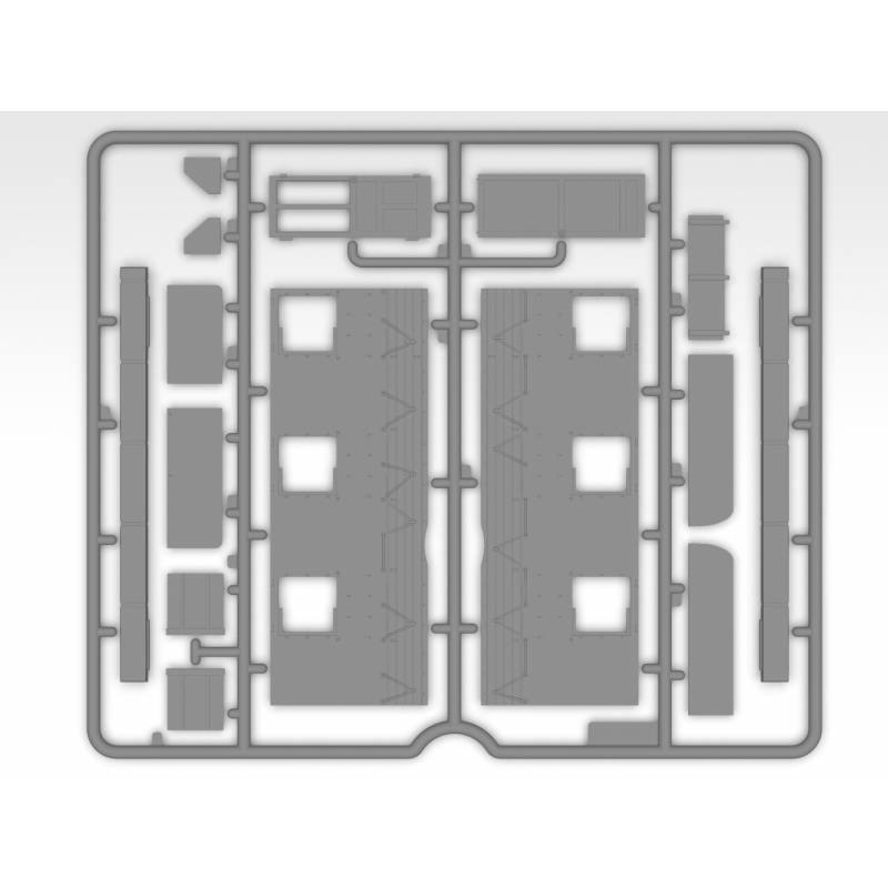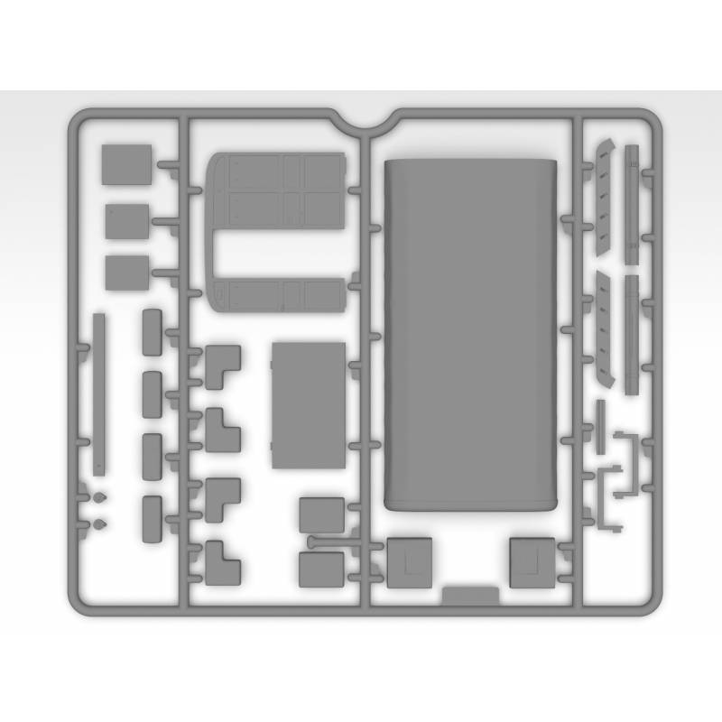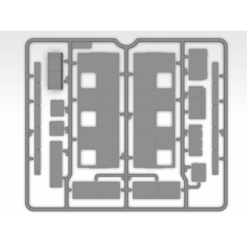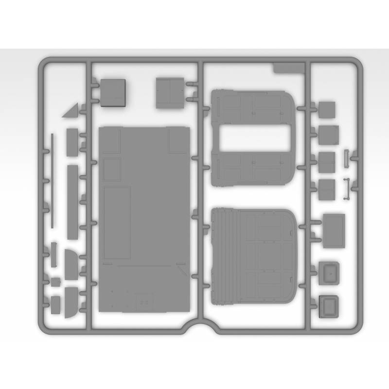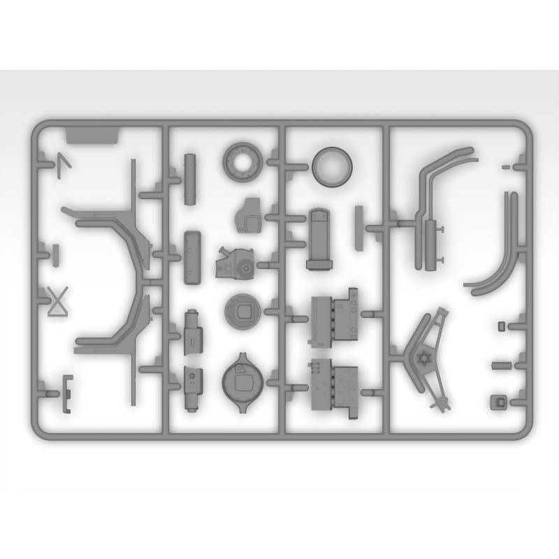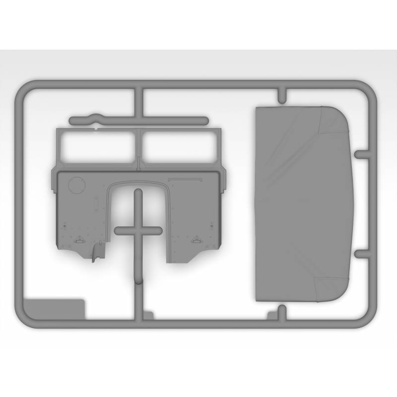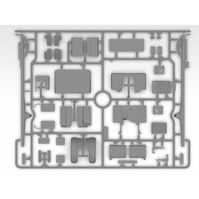 Le kit ICM 35604 reproduit fidèlement ce véhicule unique et emblématique, accompagné de son personnel d’état-major. La maquette permet de reconstituer une scène réaliste de commandement allié, combinant le camion de commandement et quatre figurines d’officiers et de soldats.