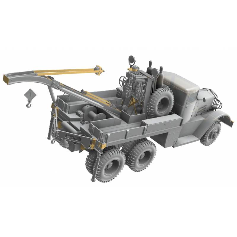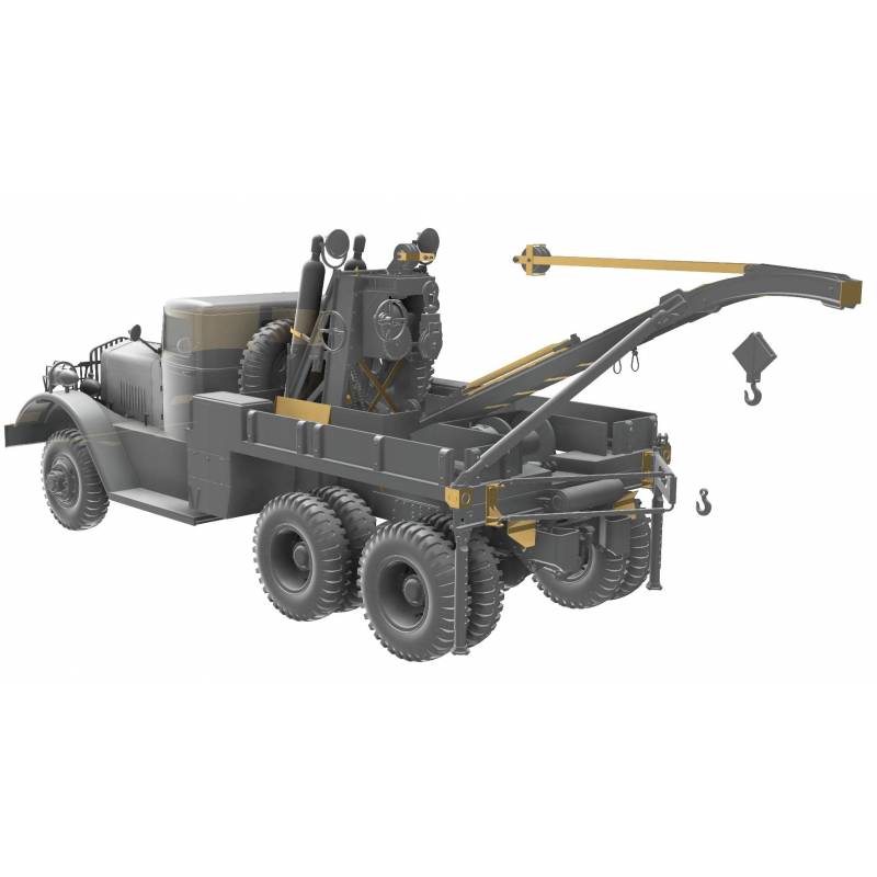 La grue arrière, pièce maîtresse du véhicule, est reproduite avec ses détails mécaniques, son bras caractéristique de la Series 4 et ses câblages. Le kit propose aussi des options intéressantes, comme un pare-chocs avant alternatif avec dispositifs de levage et d’attelage (« whiffle tree ») ainsi que des équipements de récupération additionnels, permettant au maquettiste de personnaliser son modèle selon diverses situations de dépannage. Le châssis, le moteur, la cabine et les accessoires sont finement moulés, offrant un rendu réaliste dès le montage, et laissant de nombreuses possibilités aux amateurs de patines et de dioramas.