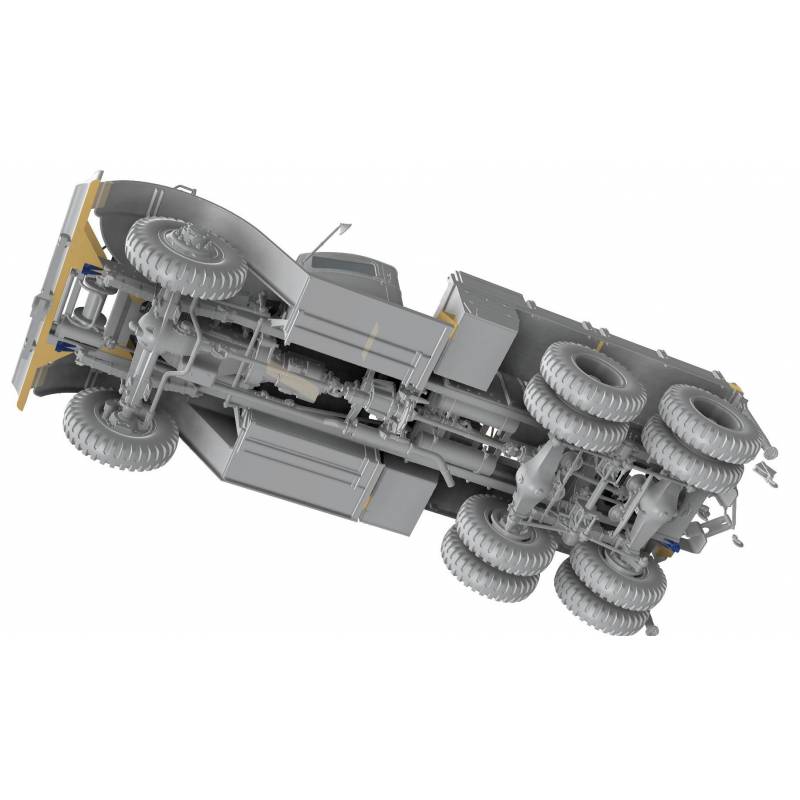 Le kit Thunder Model 35012 propose une reproduction particulièrement détaillée de ce camion hors du commun. La boîte contient 7 grappes regroupant environ 580 pièces en plastique injecté, 8 pièces transparentes pour les vitrages, des éléments en photodécoupe, ainsi que 8 pièces imprimées en 3D offrant un niveau de finesse exceptionnel pour certaines zones mécaniques ou accessoires. Des décalcomanies de haute qualité permettent de représenter différentes configurations en service. Le set inclut également des cordages et chaînes à l’échelle, reproduisant fidèlement le matériel de remorquage.