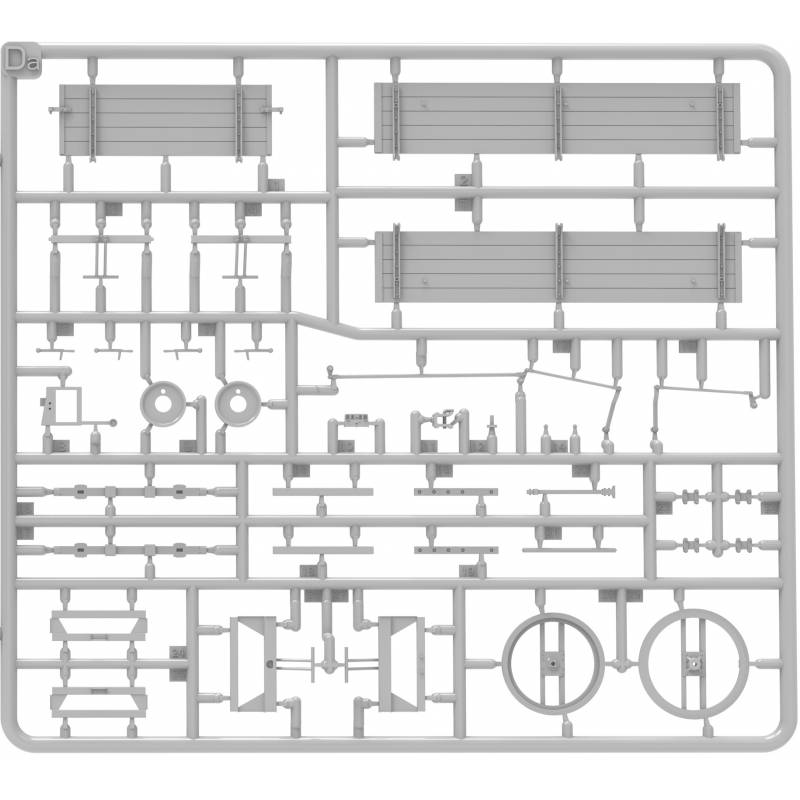 La maquette MiniArt 35487 à l’échelle 1/35 restitue avec un réalisme exceptionnel cette remorque utilitaire typique de la logistique allemande. Le kit comprend :