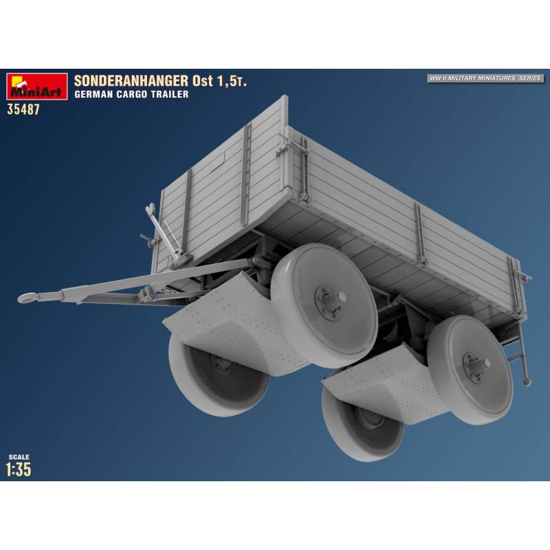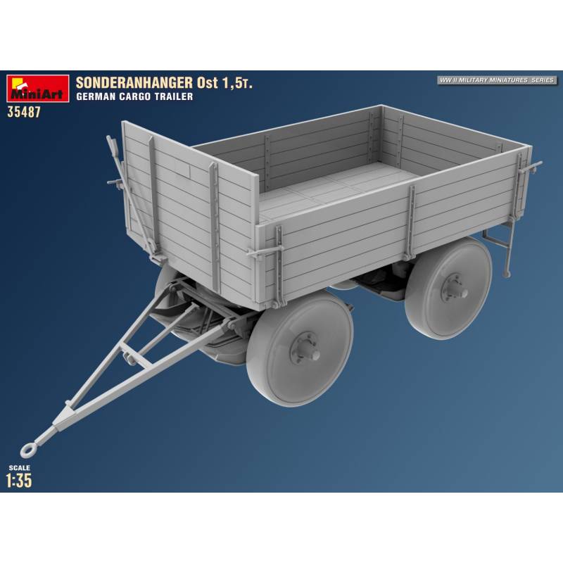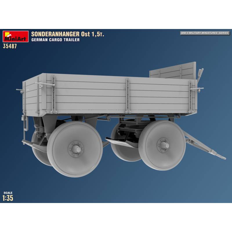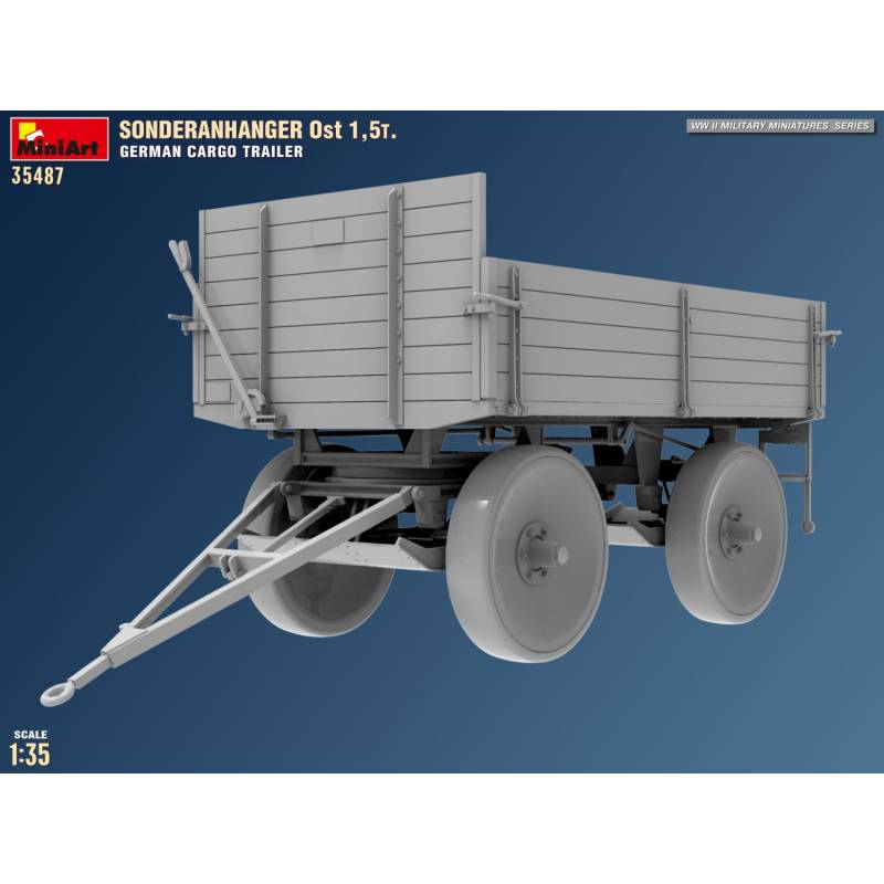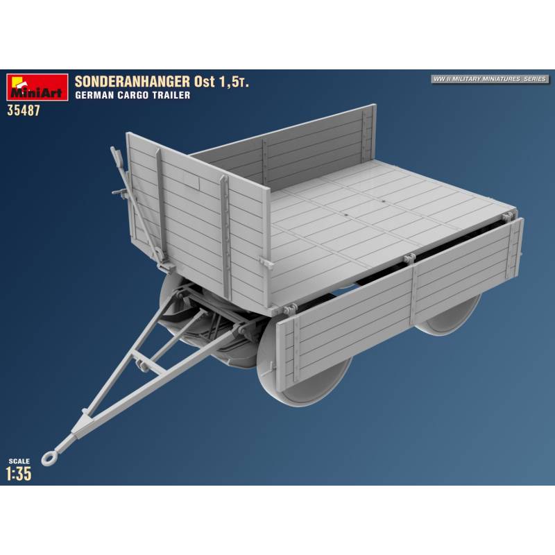 La Sonderanhänger Ost 1.5t de MiniArt est une maquette finement détaillée, à la fois complémentaire et indispensable pour tout diorama allemand de la Seconde Guerre mondiale, représentant avec justesse le rôle discret mais vital du matériel de soutien dans les armées du Reich.