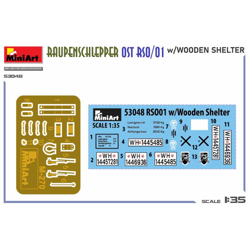 La version RSO/01 avec abri en bois reproduite ici par MiniArt représente une adaptation très répandue sur le terrain : la cabine métallique ouverte d’origine y est remplacée par une superstructure en bois montée sur le châssis, offrant une meilleure protection aux équipages contre le froid et les intempéries. Cette modification improvisée, souvent réalisée sur le front même, permettait également d’abriter du matériel sensible, des blessés ou des transmissions. Ces variantes improvisées témoignent du pragmatisme et de l’ingéniosité des troupes allemandes confrontées à des conditions extrêmes.