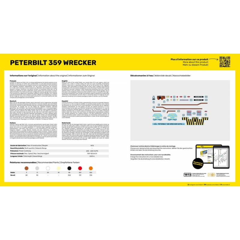 Starter Kit HELLER 1/43 Peterbilt 359 Wrecker. 190 pièces, peintures, colle et pinceau inclus. Détails réalistes et design emblématique américain.