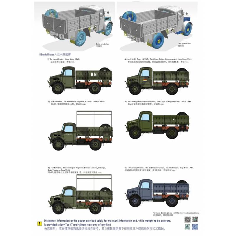 Sa présence fut particulièrement marquée sur de nombreux théâtres d’opérations, depuis la campagne d’Europe occidentale jusqu’au désert nord-africain, en passant par l’Italie, le Moyen-Orient ou encore l’Europe libérée à partir de 1944. Comme beaucoup de véhicules logistiques alliés, le Bedford GS OXD Mk. I incarnait une guerre de mouvement rendue possible par une organisation matérielle rigoureuse. Sans carburant, sans pièces, sans vivres et sans munitions, aucune armée ne pouvait tenir longtemps. Le Bedford fut donc l’un des rouages essentiels de cette machine logistique britannique, au même titre que d’autres camions emblématiques du conflit. Son aspect utilitaire, sa cabine anguleuse, sa structure simple et son plateau bâché en font aujourd’hui un sujet particulièrement intéressant pour les amateurs de véhicules de soutien et de scènes réalistes de Seconde Guerre mondiale.