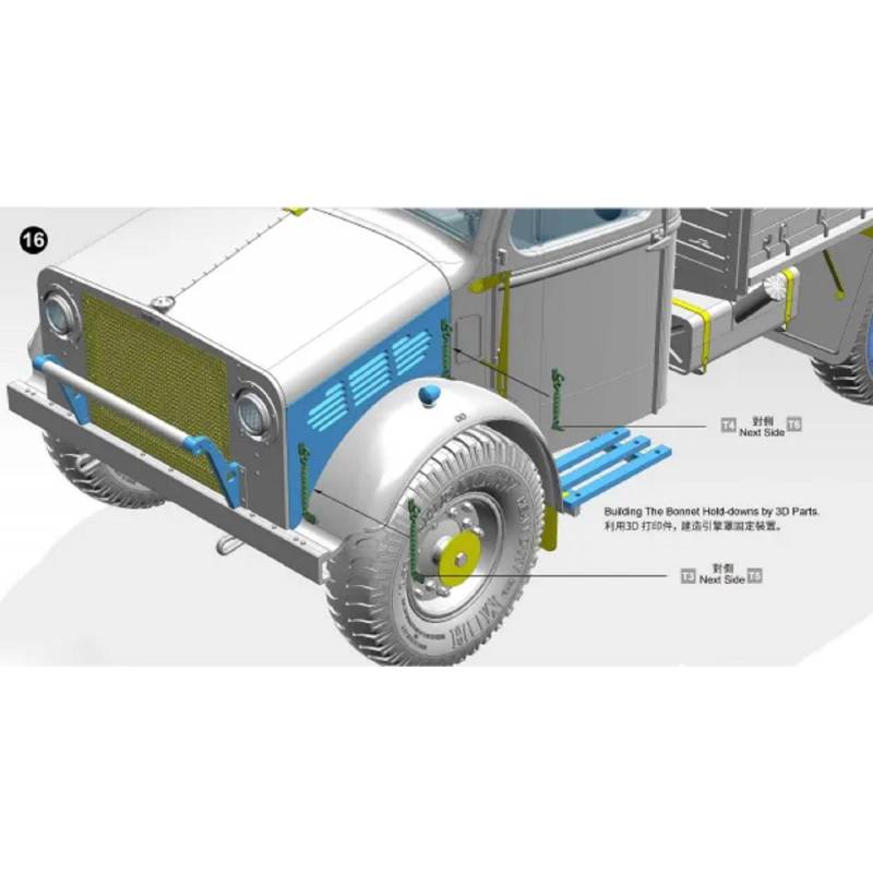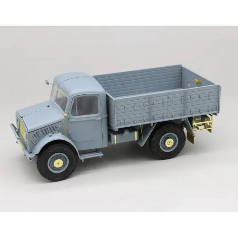 Le kit annonce également la présence de détails intérieurs, un atout important pour ce type de véhicule où la cabine peut rester bien visible selon la finition choisie. Cela permet de mettre en valeur l’aménagement interne, d’enrichir le poste de conduite et d’apporter davantage de réalisme à l’ensemble. Les pièces transparentes incluses facilitent un rendu soigné des vitrages, tandis que les pièces en photodécoupe viennent affiner certains éléments délicats et rehausser le niveau de détail général. À cette échelle, ces compléments apportent une vraie finesse visuelle et permettent d’obtenir une reproduction plus convaincante qu’avec un moulage classique seul.
