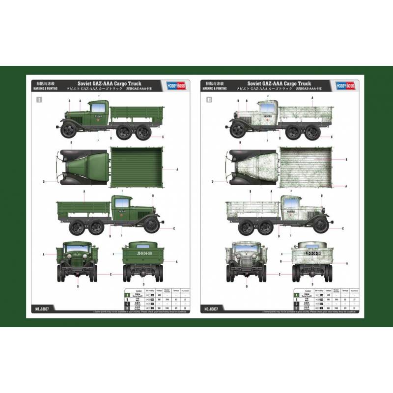 maquette camion Soviet GAZ-AAA Cargo Truck HOBBY BOSS 83837 1/35ème maquette char promo
