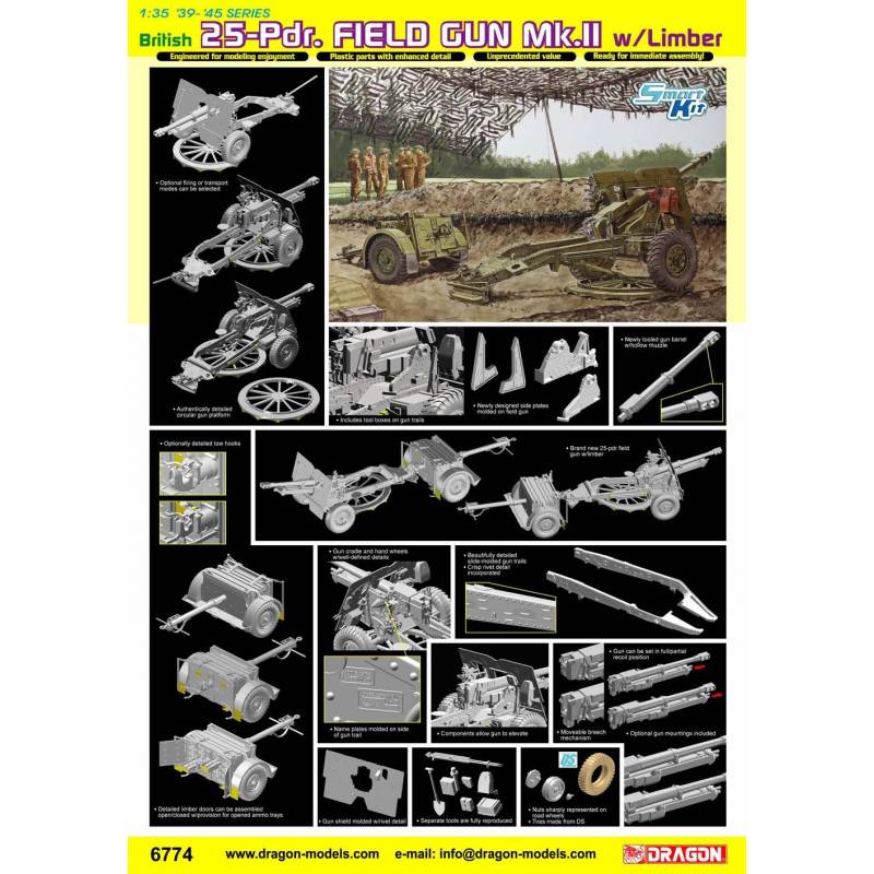 maquette canon British 25-Pdr. Field Gun Mk.II w/Limber DRAGON 6774 1/35ème maquette char promo