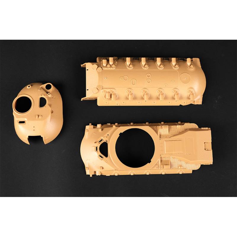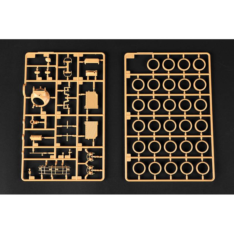 – Plus de 550 pièces, dont 180 maillons de chenilles individuels pour un rendu très réaliste du train de roulement
