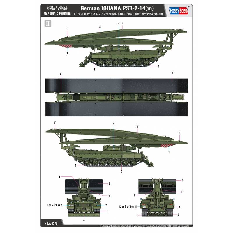 Le système PSB-2 est capable de déployer différents types de ponts modulaires, avec une capacité de franchissement pouvant atteindre environ 26 mètres. Le modèle représenté par ce kit correspond à une configuration équipée de deux ponts de 14 mètres chacun, offrant une grande flexibilité d’emploi et permettant un déploiement rapide sous protection blindée, directement en zone de combat. Basé sur le châssis éprouvé du Leopard 2, le Reguan bénéficie de la mobilité, de la robustesse et de la protection caractéristiques de ce char de combat principal.