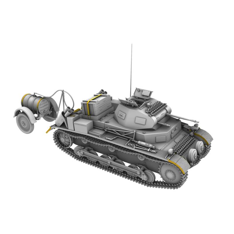 La maquette au 1/35 d’IBG Models reproduit avec fidélité le Pz.Kpfw. II Ausf. B accompagné de sa remorque à carburant, un ensemble peu commun et très intéressant pour les amateurs de véhicules blindés allemands de début de guerre.