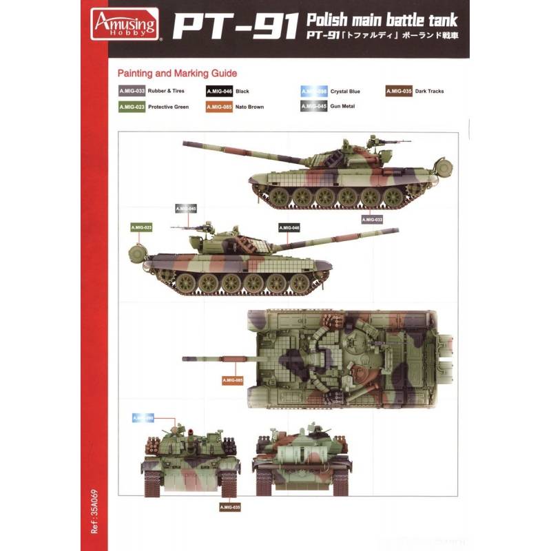 Le kit Amusing Hobby 35A069 à l’échelle 1/35 offre une reproduction extrêmement fidèle et détaillée de ce char moderne polonais. L’ensemble comprend :